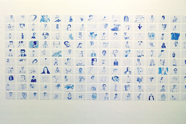 | queer | 2006 | Installation mit 180 Arbeiten Format A6 in der Gallery Daeppen | 125 x 300 cm |