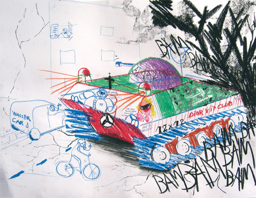 | 4 x 4 is dead | 2008 | 50 x 65 cm | craie grasse sur papier | private collection |
